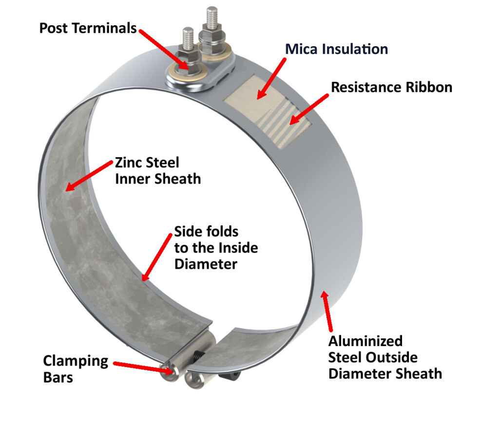 De Thinband bandverwarmingselementen zijn het herontwerp van het standaard mica bandelement. Thinbands bieden aanzienlijke grotere flexibiliteit omdat ze over de volledige lengte van de band kunnen worden geopend, zonder het interne ontwerp van de bandverwarming te beschadigen. Thinband heaters hebben een ontwerp uit één stuk met smalle, naar binnen gezette randen. De dikte van de heater is slechts 4mm (0.156”). Door de flexibiliteit van de heater kunnen de heaters op bestaande leidingsystemen gemonteerd worden, ook als er flenzen of andere appendages in de weg zitten.